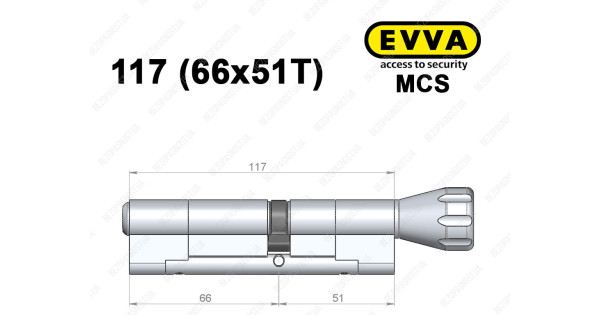 Циліндр EVVA MCS 117 мм (51x66T), з тумблером