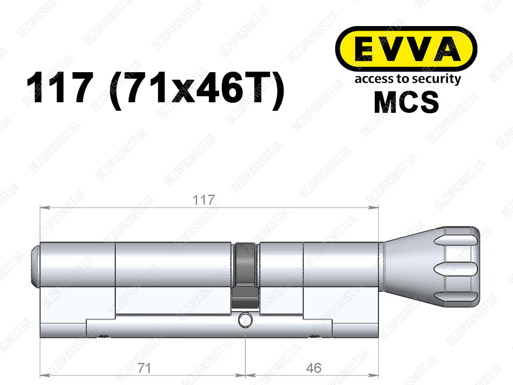 Циліндр EVVA MCS 117 мм (71x46T), з тумблером