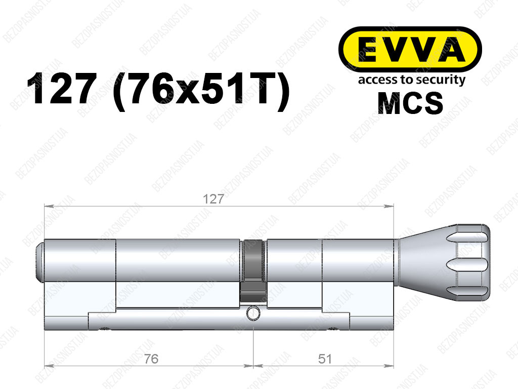Циліндр EVVA MCS 127 мм (51x76T), з тумблером