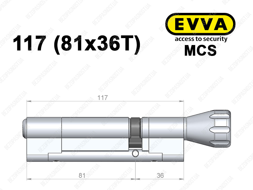 Циліндр EVVA MCS 117 мм (81x36T), з тумблером