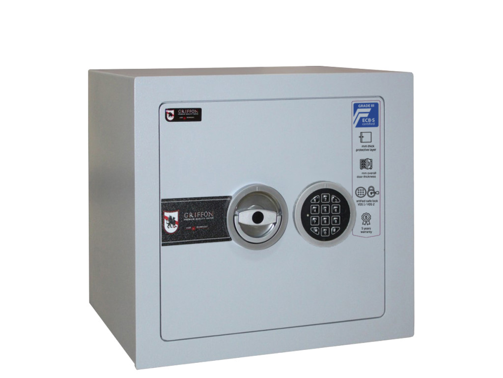Серія CLE I торгової марки Griffon (виробництво — "Паритет-К", Україна) має сертифікат 1 класу стійкості до злому згідно з європейським "банківським" стандартом EN 1143-1 (сертифікований DAKKS, Німеччина). Мабуть, це найбільш захищена модель в форматі компактних зламостійких сейфів.
