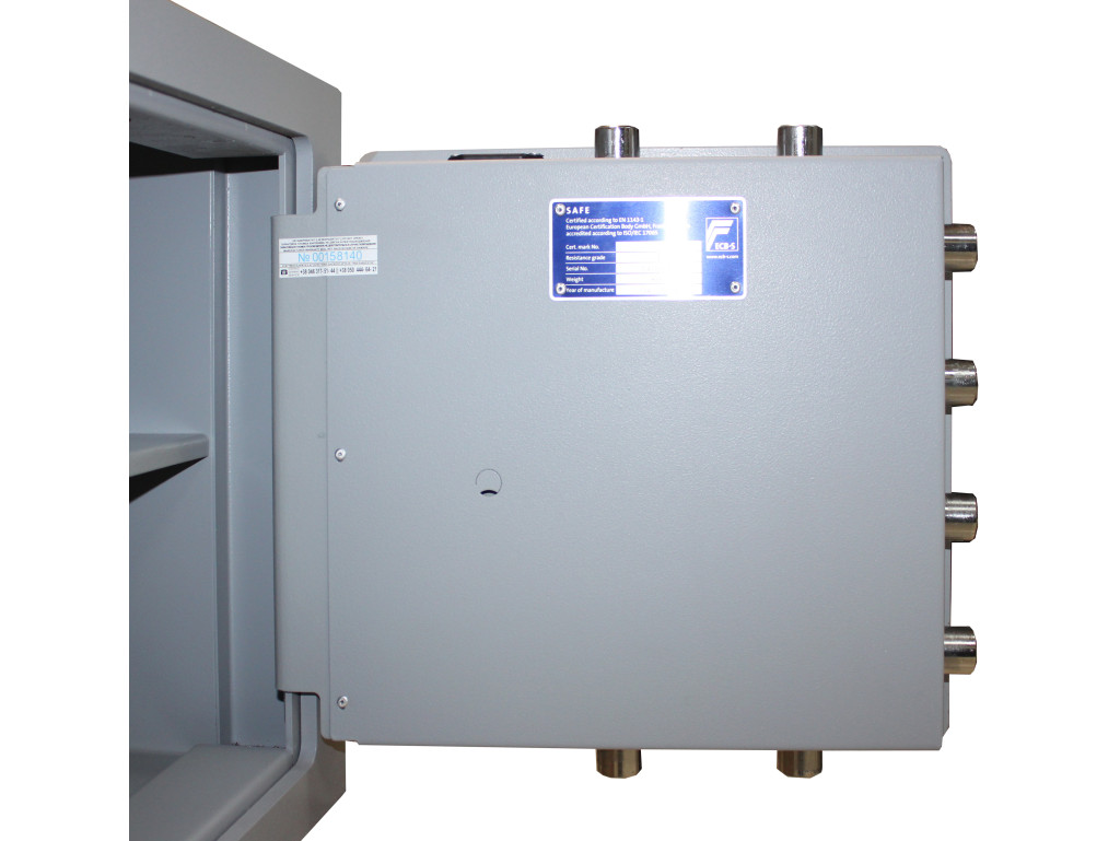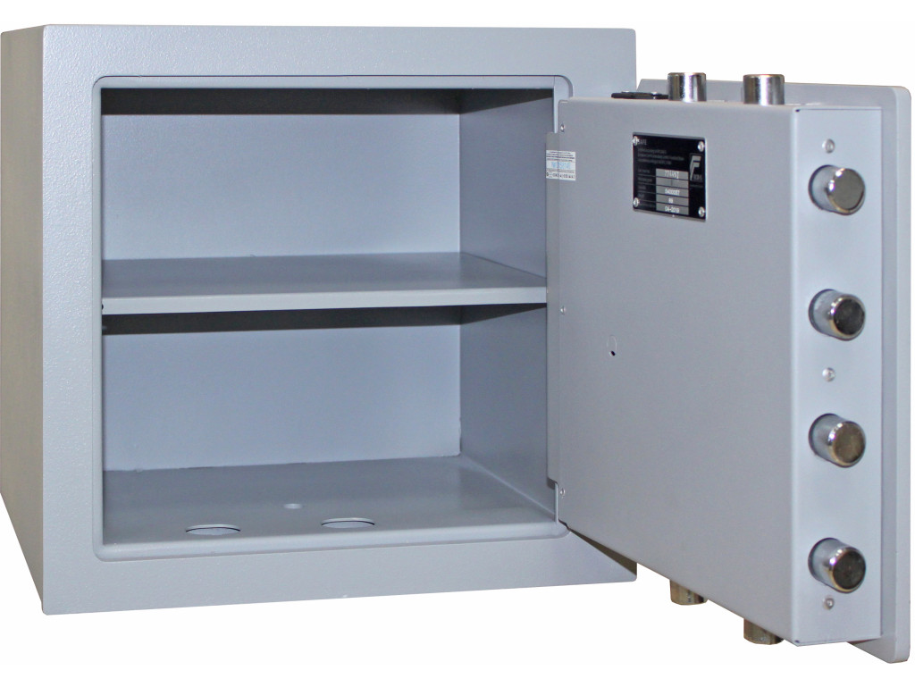Замок в даній моделі (CLE I.40.E) електронно-кодовий, виробництва M-Lock (Нідерланди). Має кілька європейських сертифікатів, в тому числі VDS класу B.