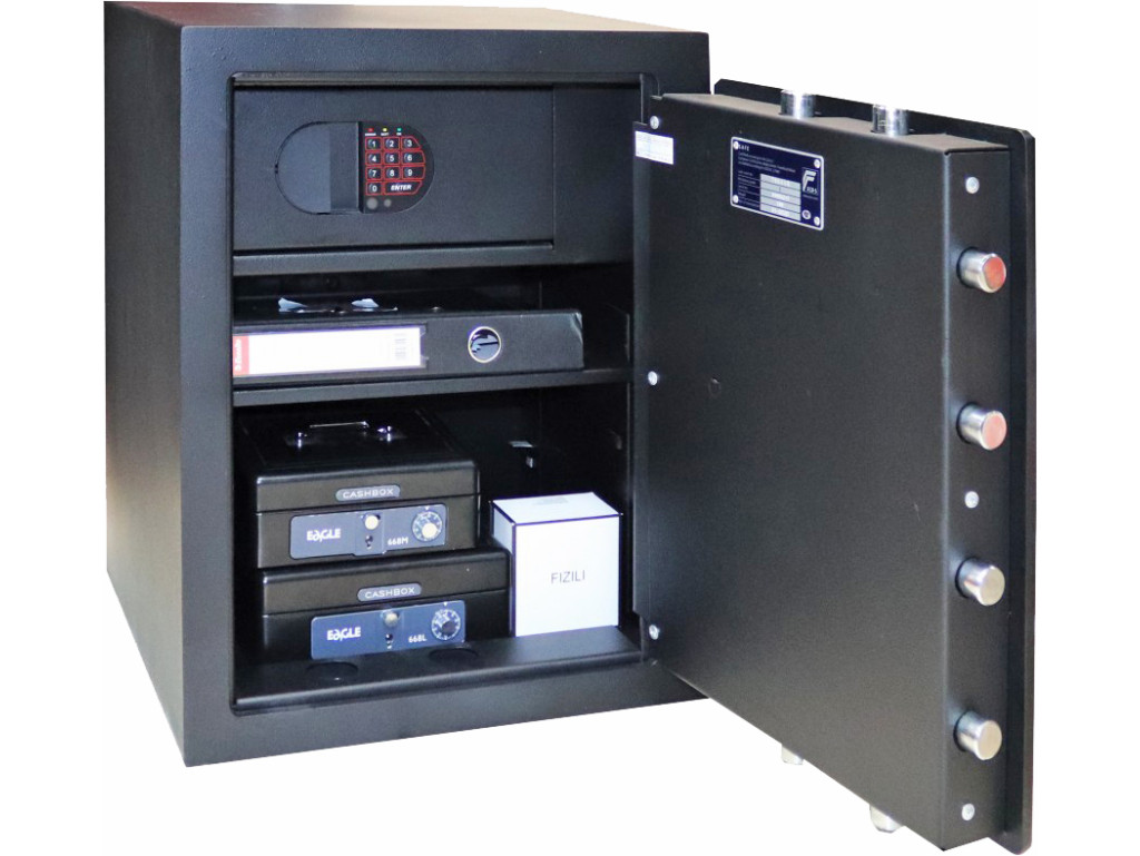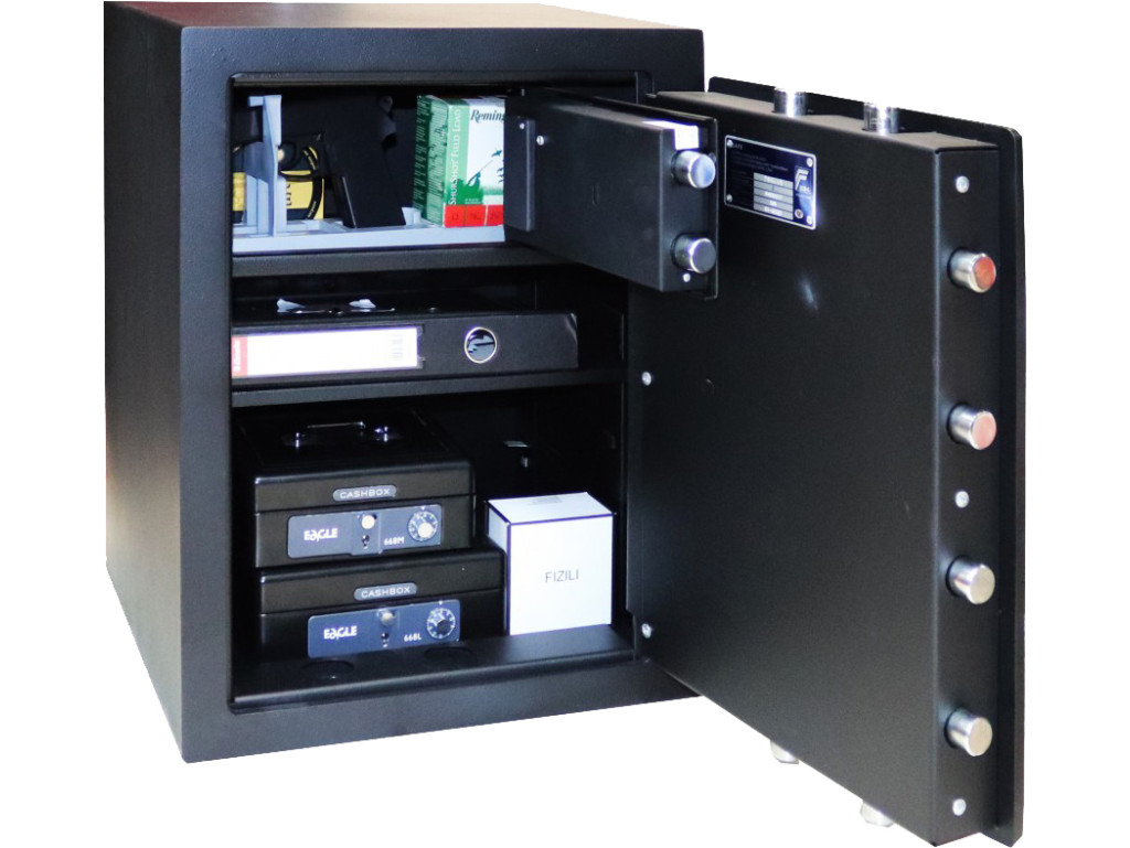 Замок в даній моделі (CLE I.55.E.T) електронно-кодовий, виробництва M-LOCK (Німеччина). Має кілька європейських сертифікатів, в тому числі VDS класу B.