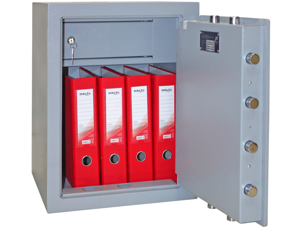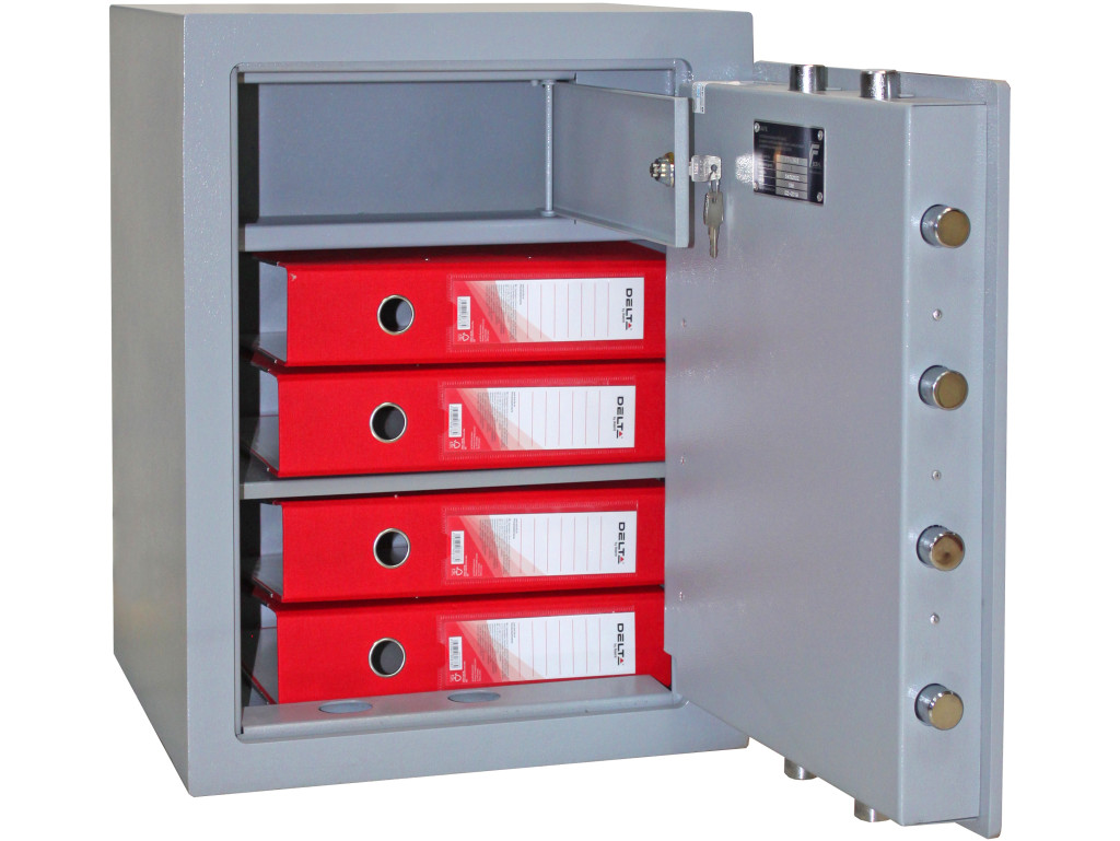 Замок в даній моделі (CLE I.55.K.T) сейфовий ключовий, виробництва STUV (Німеччина). Має кілька європейських сертифікатів, в тому числі VDS класу A.