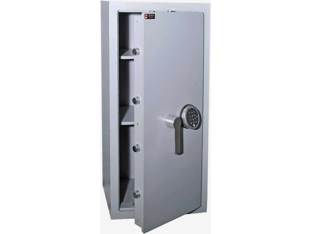 Замок в даній моделі (CLE I.90.E) електронно-кодовий, виробництва STUV SWINGLOX (Німеччина). Має кілька європейських сертифікатів, в тому числі VDS класу B.