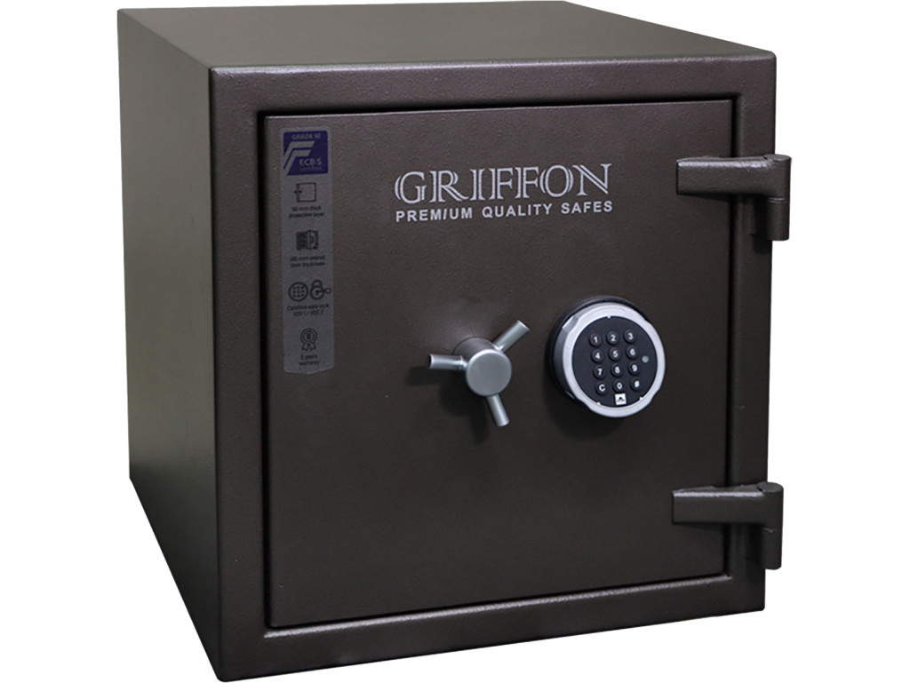 Сейфы CLE III торговой марки GRIFFON сертифицированы в Германии Европейским органом сертификации ECB-S и соответствуют III классу взломостойкости по EN 1143-1. Они также имеют украинский сертификат огнестойкости и соответствуют LFS 30P (30 минут) по ДСТУ EN 15659.