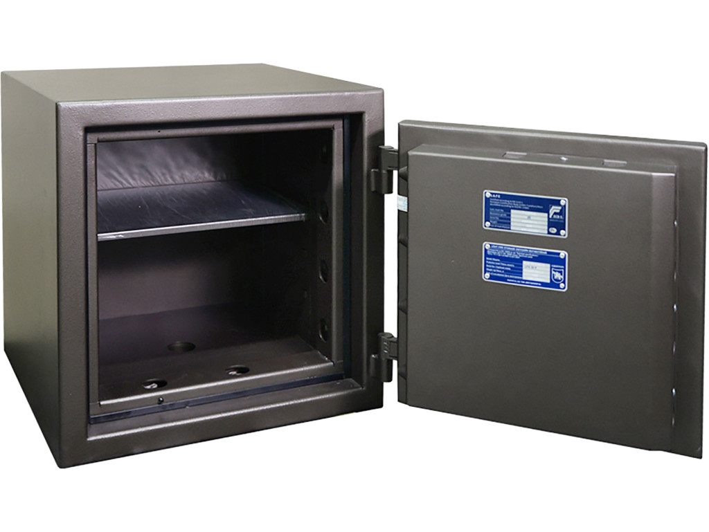 Конструктивно сейф представляет собой двустенную конструкцию, заполненную 50-миллиметровым слоем армированного фортификационного бетона. Наружный лист выполнен из 2-миллиметровой стали, внутренний — 6-миллиметровая нержавеющая сталь. Замковый отсек оснащен ригельной системой запирания, управляемой ручкой и блокируемой электронно-кодовым замком STUV SWINGLOX (Германия, сертификат класса VDS 2). Ригели Ø25 мм, вращающиеся, трехстороннего запирания (4+2+2). Дополнительно установлена блокировка от выбивания замка, защита ригелей и замка от высверливания.