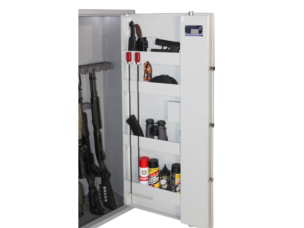 Сейф имеет два запираемых отделения, переставные боковые полки, а также два типа переставных ложемента: простой на магнитной ленте, и более массивный, на металлическом основании, позволяющий поставить оружие в два ряда. В двери расположены переставные карманы для магазинов под патроны и средства ухода за оружием, держатели шомполов.