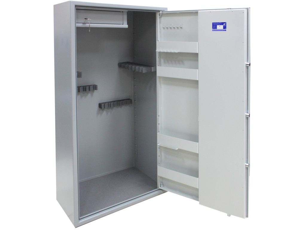 Сейф має два відділення, що замикаються на ключ, переставні бокові полиці, а також два типи переставних ложемента: простий на магнітній стрічці, і більш масивний, на металевій основі, що дозволяє поставити зброю в два ряди. У дверях розташовані переставні кармани для магазинів для патронів і засобів догляду за зброєю, металеві утримувачі для шомполів.