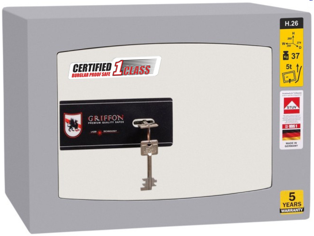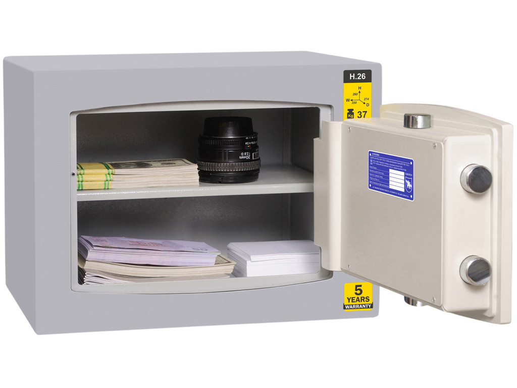 Замок в даній моделі (H.26.K) сейфовий ключовий, виробництва STUV (Німеччина). Має кілька європейських сертифікатів, в тому числі VDS класу A.