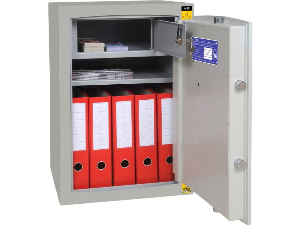 Замок в даній моделі (H.65.K) сейфовий ключовий, виробництва STUV (Німеччина). Має кілька європейських сертифікатів, в тому числі VDS класу A.