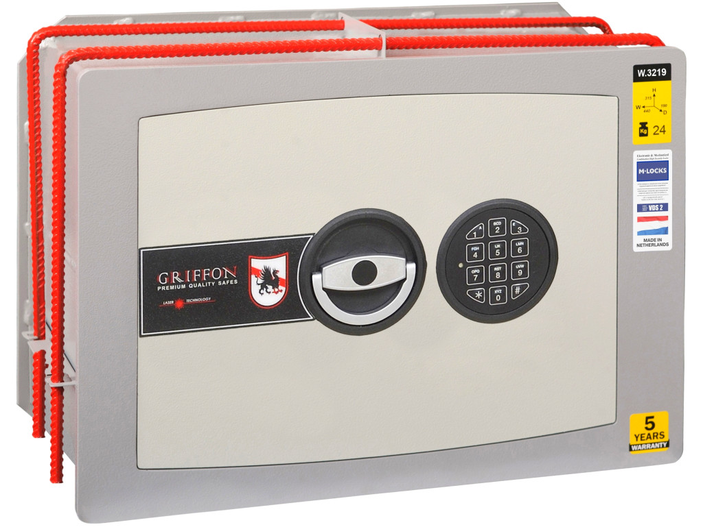 Данна модель (W.3219.E) оснащена електронно-кодовим замком виробництва M-LOCKS (Нідерланди). Живлення — батарейка типу "Крона" (є можливість аварийного підключення живлення ззовні сейфа).